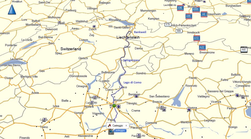 Weiter geht es dem Como-See entlang nach Lecco, dann Mailand und zum heutigen Etappenziel Casteggio (Mailand war nicht der Plan – trotz ausgeklügelter Vorbereitung machte uns das neue Navi einen Strich durch dich Rechnung und wir fuhren direkt durch das „Centro“ ;-))