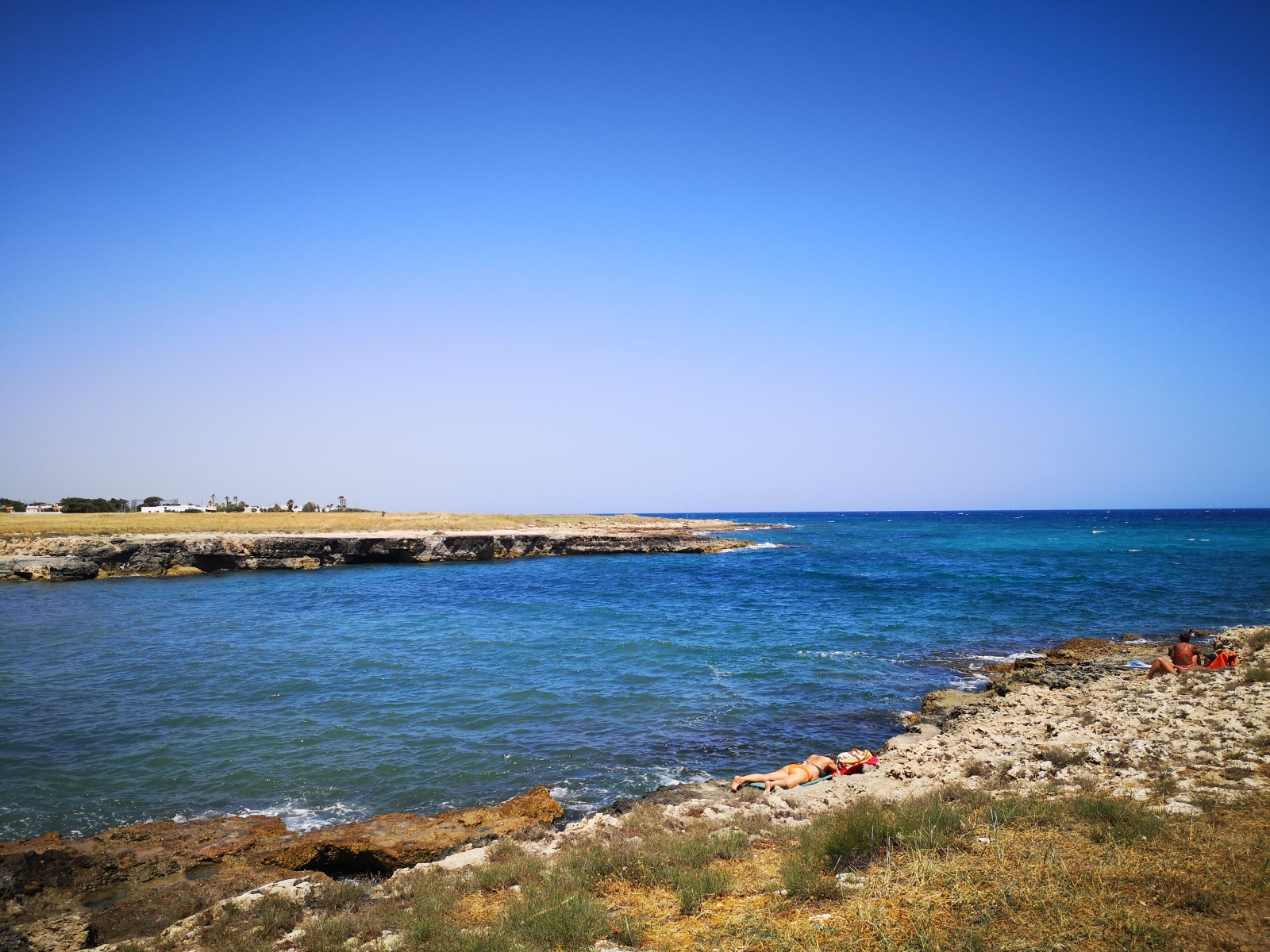 Ein Abstecher am Sandstrand in der Nähe von Marina di Ostuni und dann zurück zu unseren netten Gastgebern. Dort gibt es Wasser (Trinken, Dusche, Pool), Capucchino und etwas Süßes, da ist die Hitze nur noch halb so schlimm.