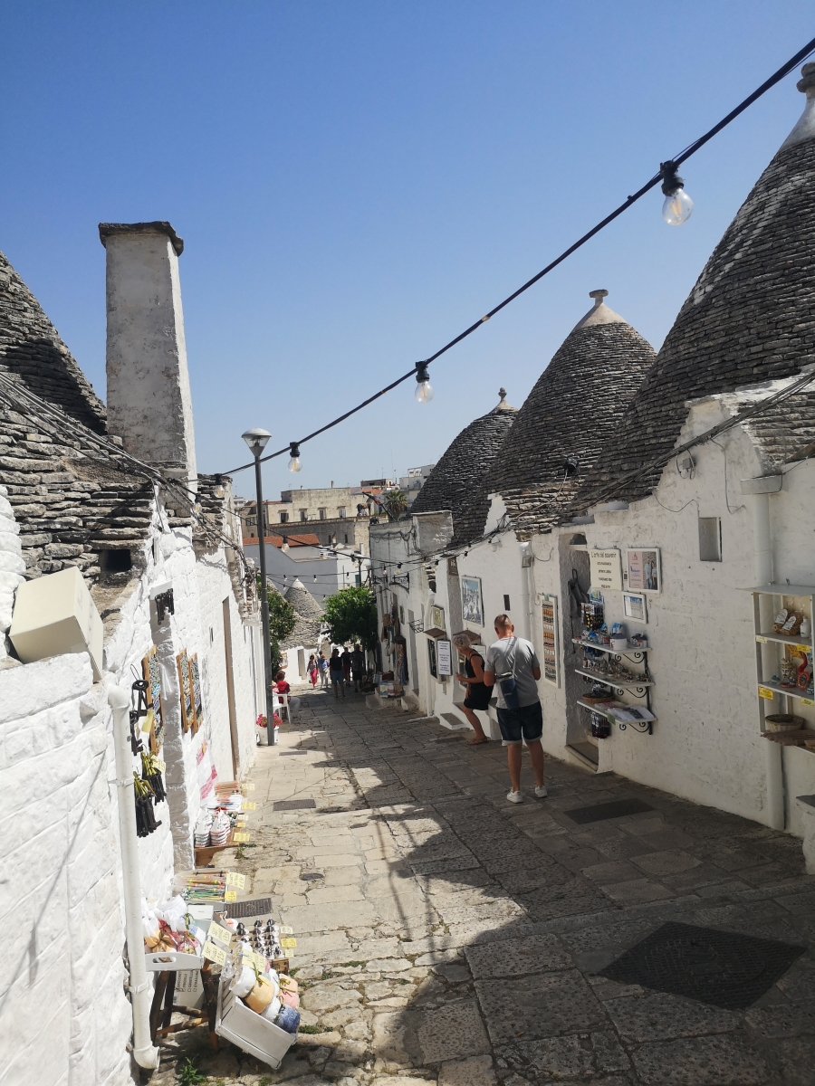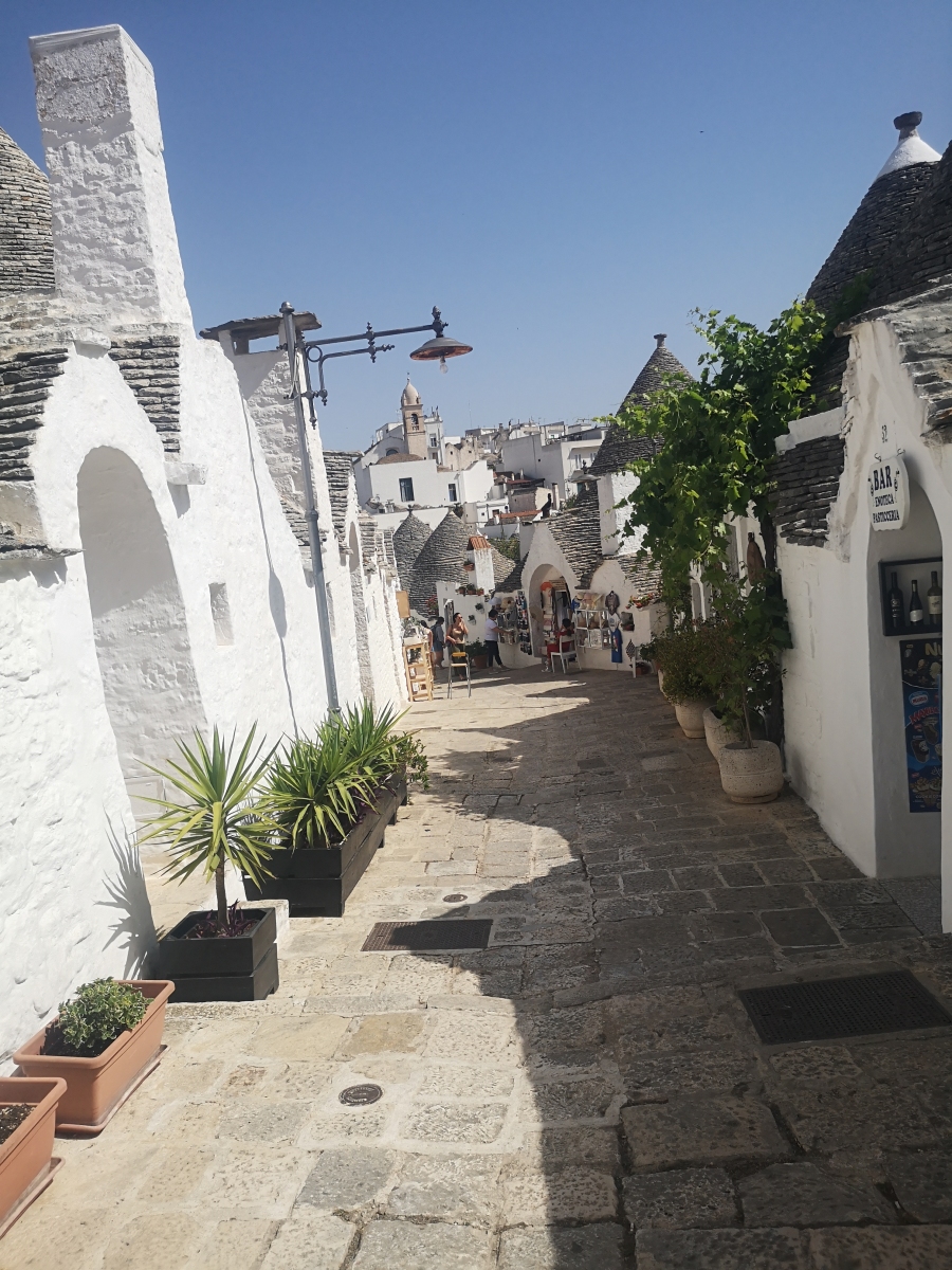 Die Temperaturen sind nur „minimalst“ zurückgegangen … da wir hier aber nur 3 Tag bleiben, möchten wir den Tag nutzen und einen Abstecher ins Zentrum von Alberobello machen, um die besagten „Trullis“ zu besichtigen. Sehr touristisch vermarktet, was uns gar nicht gefällt :// Viel schöner sind die zahlreichen Trullis, die auf dem Land verteilt, in privaten Grundstücken stehen, – wirklich speziell und sehr sehenswert.