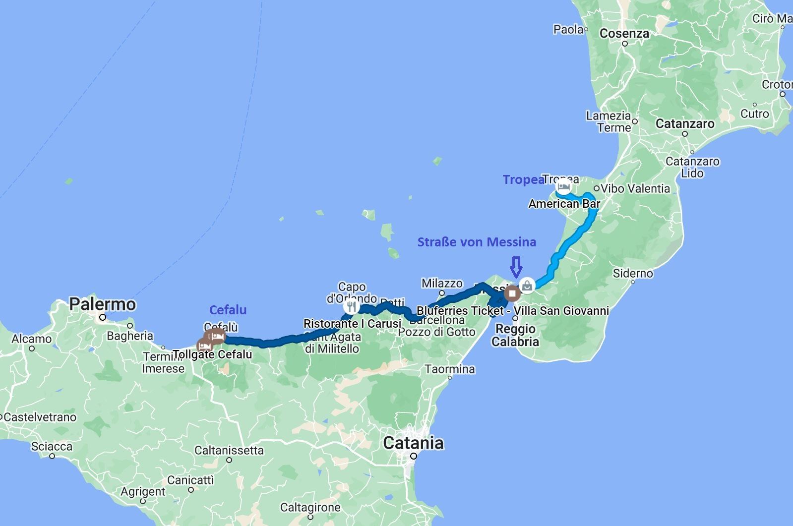 In „Capo d`Orlando“ machen wir nach Mittag einen Stop. Immer wieder sind wir fast überrascht und erstaunt, wieviel Gastfreundschaft und Hilfsbereitschaft uns entgegengebracht wird! Immer wieder werden wir angesprochen, woher wir kommen und wohin unsere Reise führt. Insbesondere ältere Italiener erzählen uns dann gerne Geschichten aus ihrem Leben und ihrer Reise, die sie einmal in das „nördlichere“ Europa geführt hat – ohne zu fragen und selbstverständlich in Italienisch, – ohne abzuchecken, ob wir sie wirklich verstehen oder nicht … :))