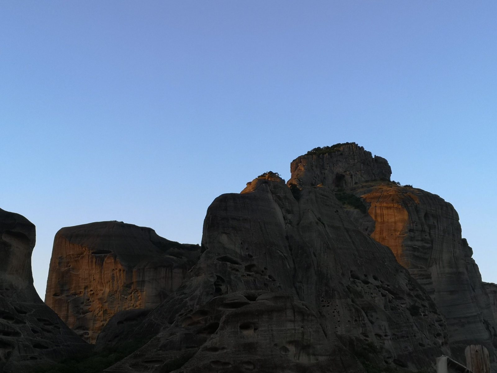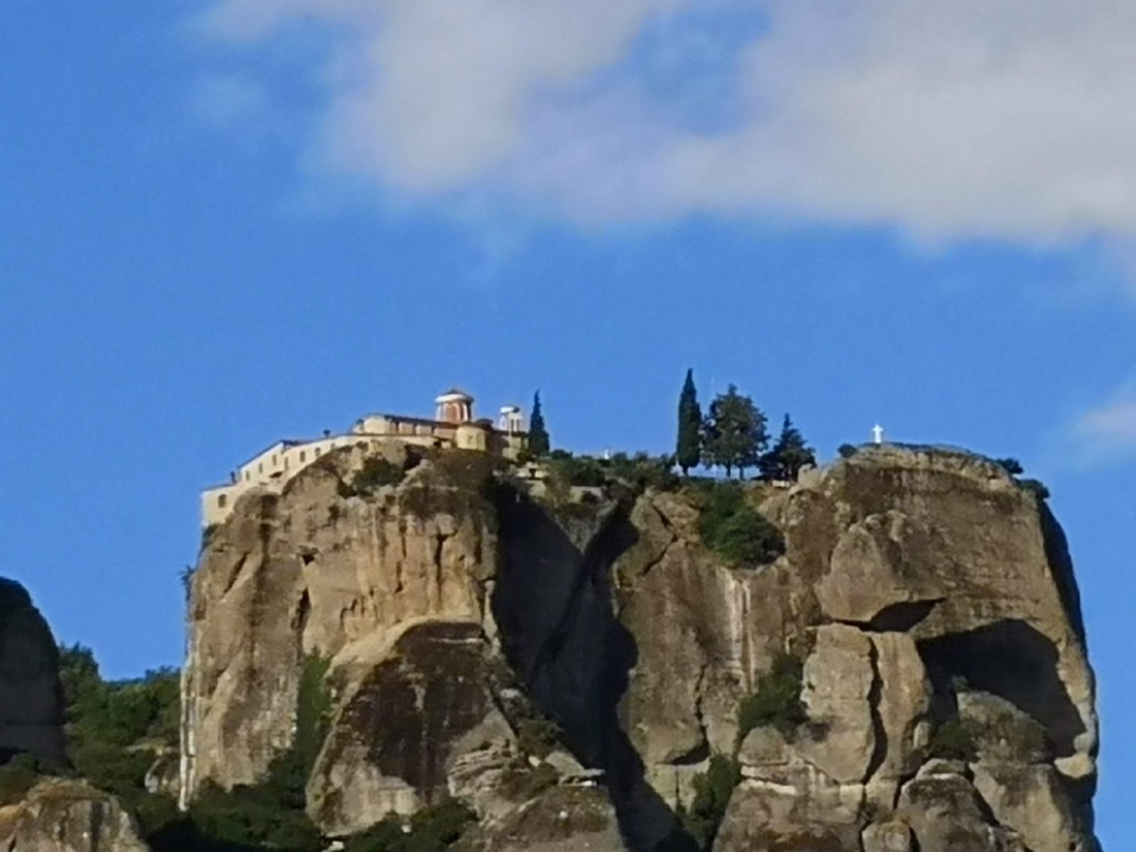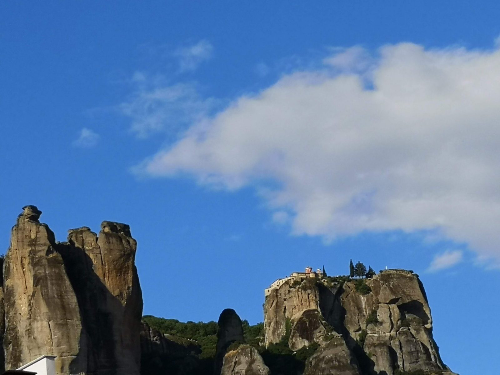 Dienstag, 1.6.: Fahrt von Agios Dimitrios nach Kalambaka, wo die Meteora-Klöster sind. Wir stehen mit Google Maps mittlerweile auf Kriegsfuß, keine Ahnung über welche Hügel und Dörfchen wir alle (Um-) Wege gefahren sind. Ehrlich gesagt, hat es dann einfach gereicht. In der Pension sind wir in dieser Saison die ersten und einzigen Gäste, Touristen sind weit und breit keine zu sehen.