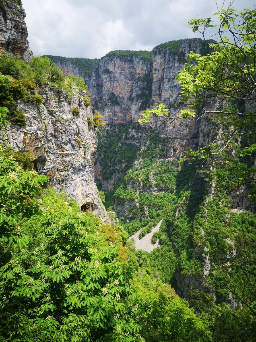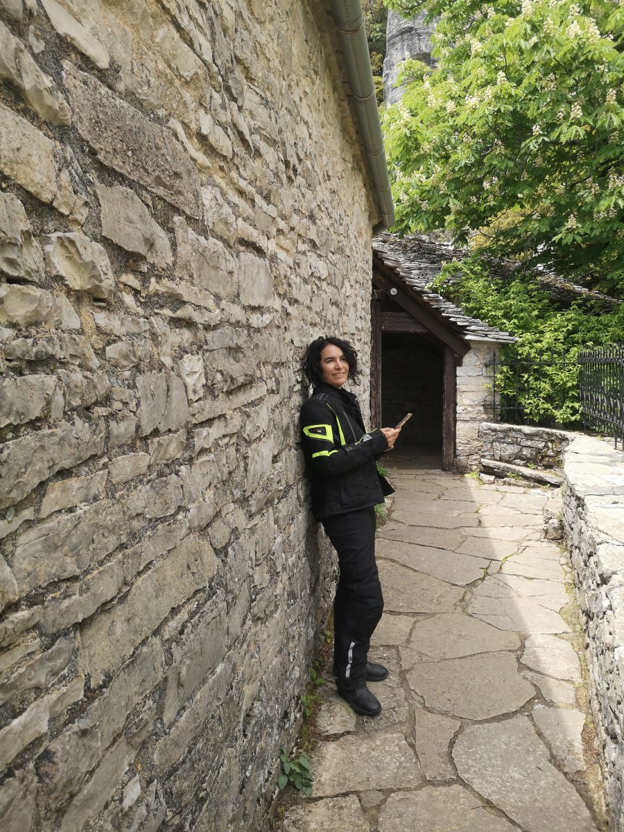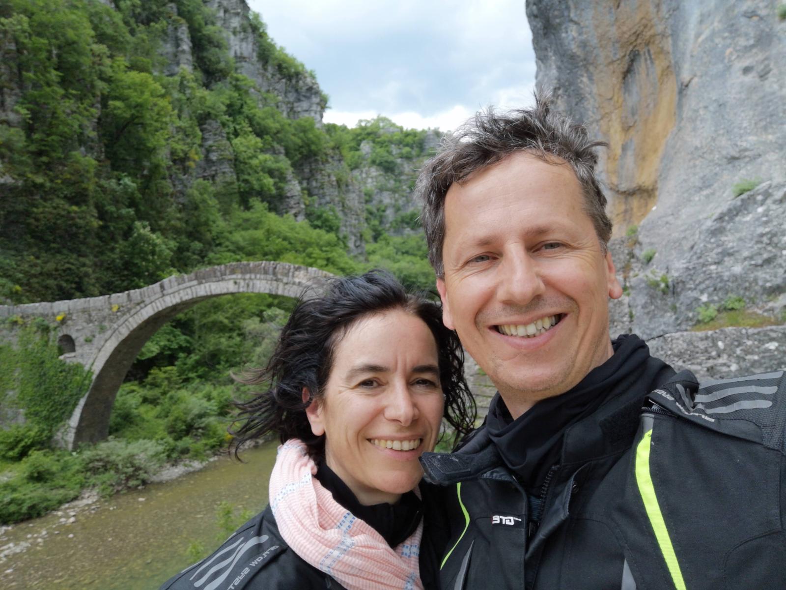 Dann geht es weiter in die Gegend „Zagori“ mit Ziel zur Vikos-Schlucht. Auch hier ist es einfach atemberaubend und wir sind dankbar um den bedeckten Himmel – in den Motorradklamotten ist auch der kleine Spaziergang bis zum alten Kloster anstrengend. (Den anschließenden Touristen-Fehler möchten wir lieber streichen: Einkehr beim erstbesten Lokal obwohl ein paar Meter weiter die griechische Freundlichkeit und das Tzaziki auf uns gewartet hätte).