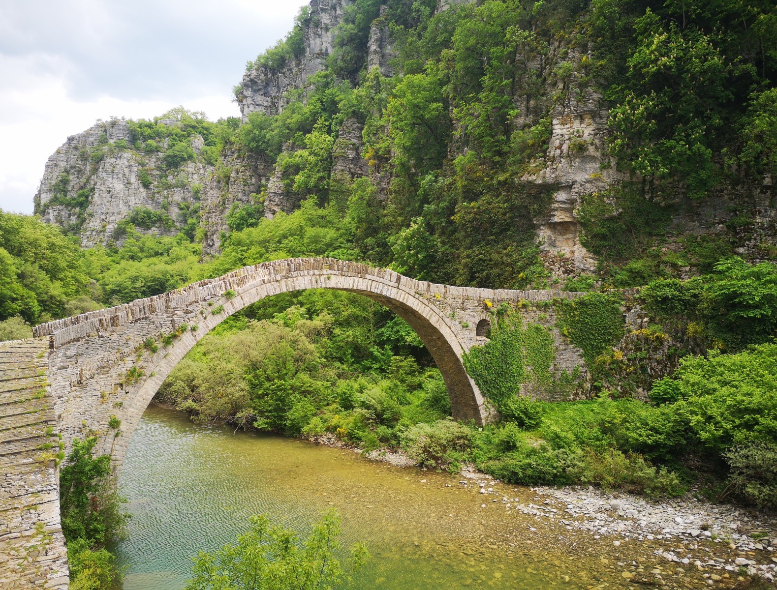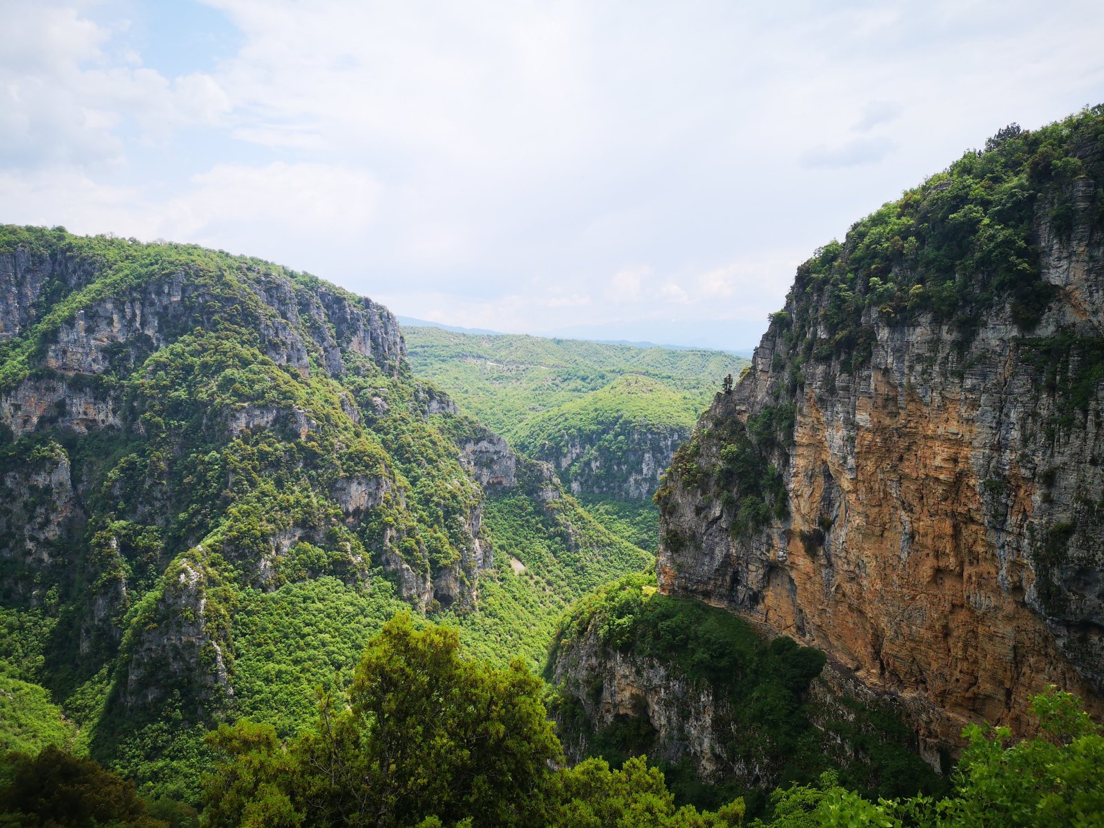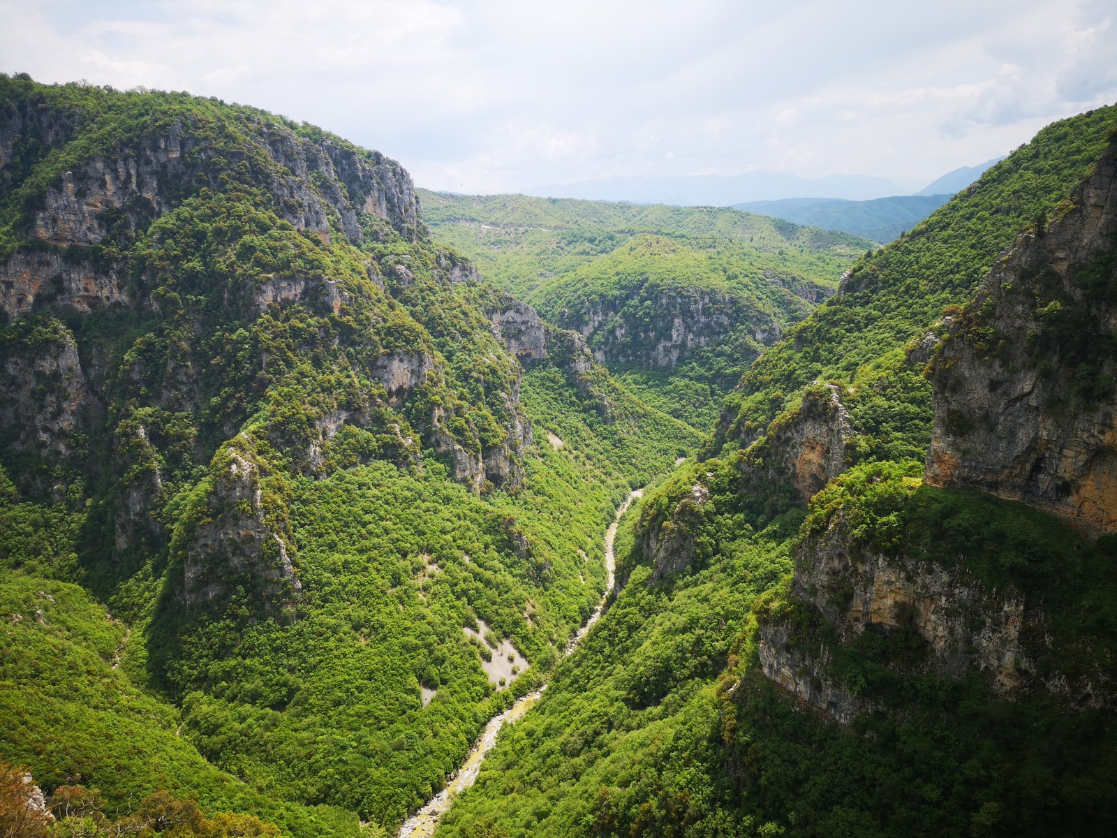 Dann geht es weiter in die Gegend „Zagori“ mit Ziel zur Vikos-Schlucht. Auch hier ist es einfach atemberaubend und wir sind dankbar um den bedeckten Himmel – in den Motorradklamotten ist auch der kleine Spaziergang bis zum alten Kloster anstrengend. (Den anschließenden Touristen-Fehler möchten wir lieber streichen: Einkehr beim erstbesten Lokal obwohl ein paar Meter weiter die griechische Freundlichkeit und das Tzaziki auf uns gewartet hätte).