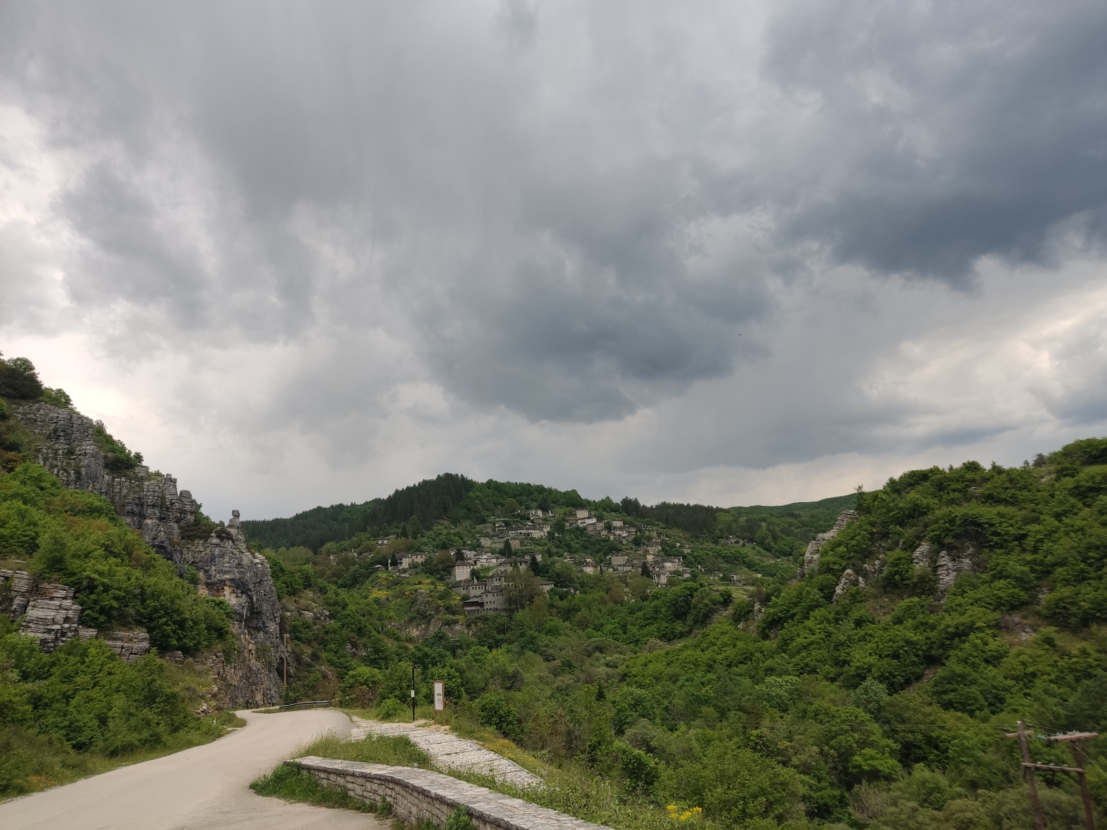 Trocken erreichen wir vor Einbruch des Sommergewitters unsere Unterkunft in Kipoi. Das Zimmer ist schön und liegt auch wunderbar am Hang aber … ui, es ist echt kalt hier. Die alten Steingemäuer und der kalte Kamin fühlen sich alles andere als gemütlich an. Wir fragen um Holz, doch es scheint ab 1. Mai nicht mehr erlaubt zu sein, den Ofen einzuheizen. Aber: der ältere Herr kommt mit Batterien für den Temperaturregler und schwupps – die Temperatur steigt von 16,5 auf angenehme 21° C! Oh ja, in der Wärme lässt es sich hier wohlfühlen.
