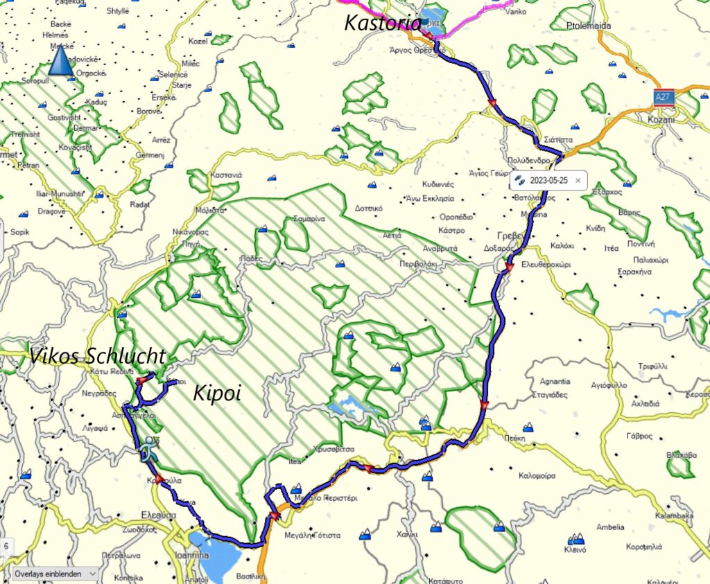 Die heutige Etappe führt erst einige Kilometer über die Autobahn in Richtung Ioannina. Auch das ist einmal wunderbar, vor allem, weil sie neu und leer ist. (Die Kosten für den Bau führen wir hier lieber nicht an … die EU bezahlt – obwohl nach der heutigen Verkehrslage auch eine Bundesstraße genügt hätte).