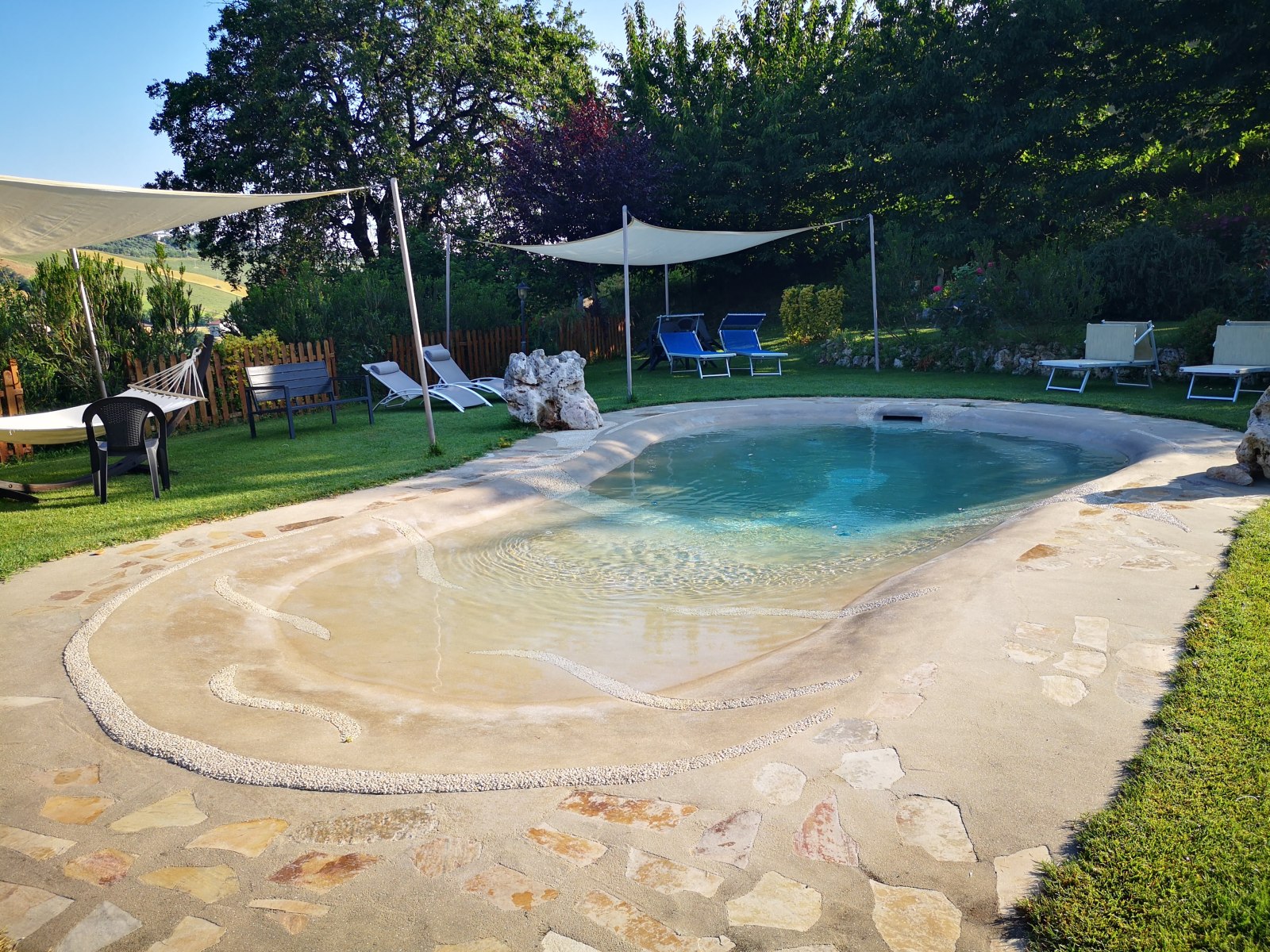 Nachdem es gestern Abend zu spät für einen Sprung in den Pool war, holt das Daniel vor dem Frühstück nach. (Gott-sei-Dank springt er nicht wirklich, denn dazu ist der „Pool“ nicht wirklich ausgelegt.) 😉
