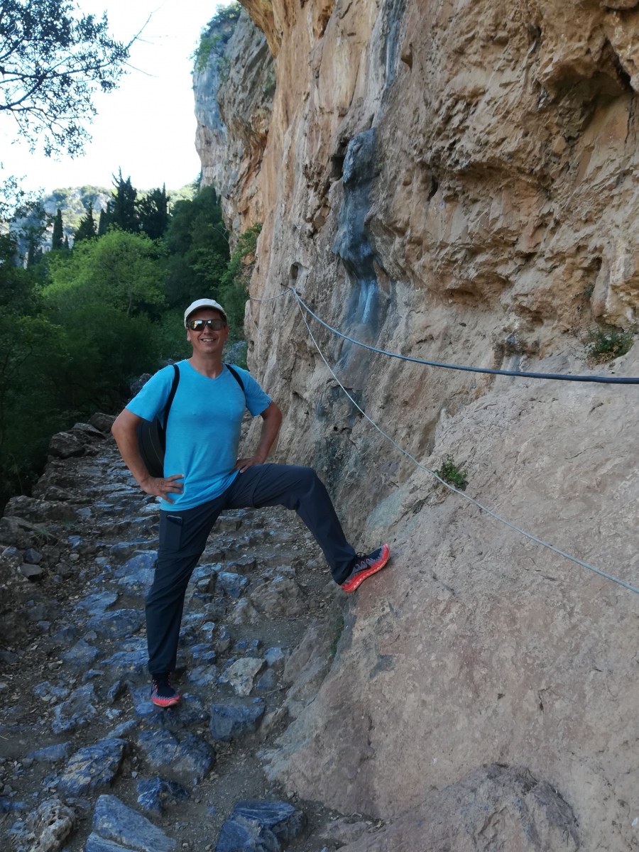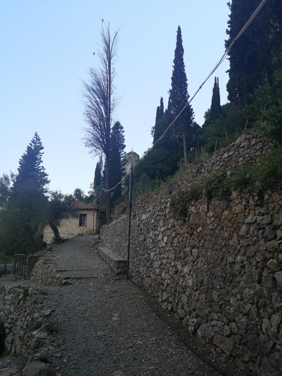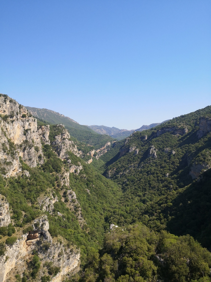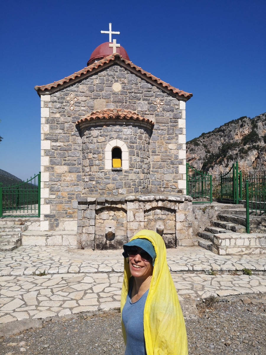 Erfüllt wandern wir durch die Schlucht des Flusses Lousios zum alten Kloster Philosophus, hier stehen nur noch die Überreste der Gemäuer. Eine wunderschöne Wanderung durch grüne Wälder, über einen tosenden Wasserfall. Kurz nach Mittag kehren wir zurück, es hat mittlerweile 32° C hier in den Bergen.